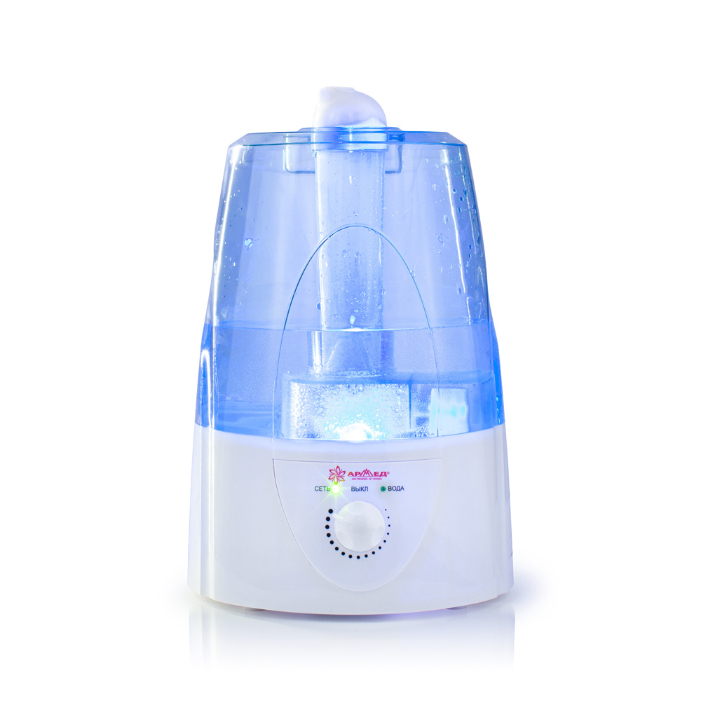 Для выбора оптимального уровня влажности модель оснащается плавным регулятором. Благодаря делениям Вы сможете выбирать и поддерживать его, создавая самую благоприятную атмосферу. Приятное сочетание белого корпуса и нежно-бирюзового прозрачного пластика емкости для воды не будет раздражать глаз. При отсутствии воды в резервуаре увлажнитель отключается автоматически, что обеспечит безопасность использования прибора. Резервуар увлажнителя вмещает 5 л воды. Это позволяет использовать устройство в течение длительного времени как дома, так и в офисе. Поворотный распылитель обеспечивает равномерное распределение пара по комнате за счет выбора направления. Увлажнитель изготовлен из качественного пластика. Гарантийный срок производителя составляет 1 год.